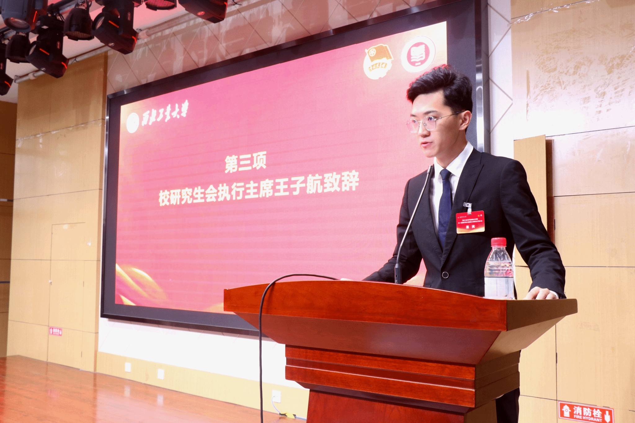 上午九时,大会在庄严的国歌声中正式开幕,全体与会人员庄严肃立,齐唱国歌。校团委书记马婷婷、校研究生会执行主席王子航、学院党委副书记李刚分别致辞。校团委书记马婷婷对各位代表的到来表示热烈欢迎,希望泰国A片