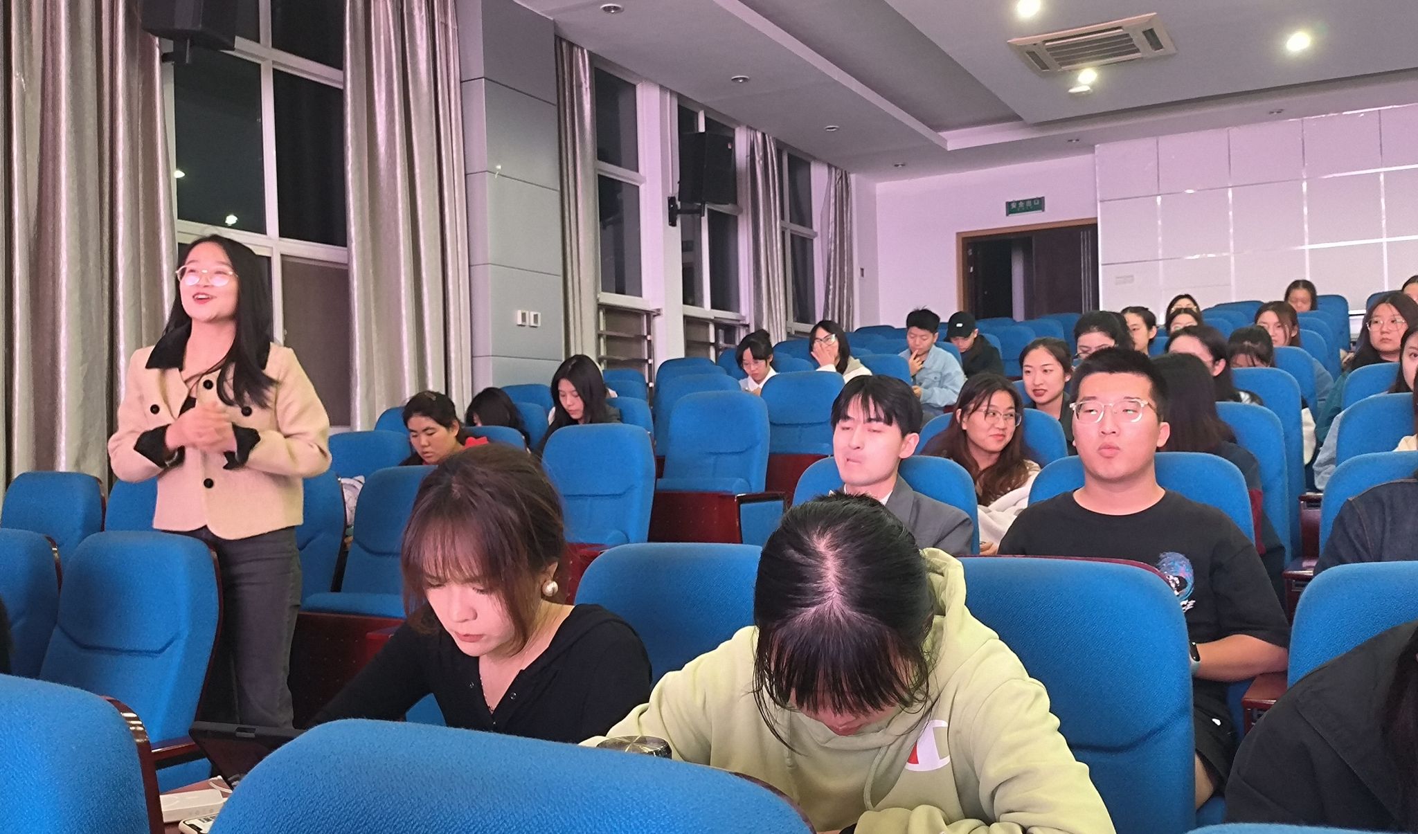 为深入开展学习贯彻习近平新时代中国特色社会主义思想主题教育相关要求,加强青年思想政治引领,进一步筑牢广大团员和青年坚定不移听党话、跟党走的信仰之基,2023年10月13日晚,泰国A片 硕士生团支部在泰国A片 207报告厅联合开展“团员和青年主题教育——思想旗帜”主题团日活动,活动由马克思主义中国化研究系团支部书记王枫主持。