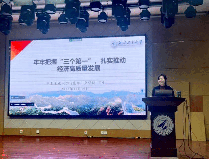 首先,王换老师从“三期叠加”新常态着手分析了我国经济转向高质量发展的历史逻辑和实践要求,并从保持经济持续健康发展、适应我国社会主要矛盾变化、遵循经济发展规律这“三个必然要求”对“为什么要推动经济高质量发展”作了进一步阐述,引导同学们正确理解和把握党的二十大报告中提出的“高质量发展是全面建设社会主义现代化国家的首要任务”“要坚持以推动高质量发展为主题”等重要论述的深刻意蕴。