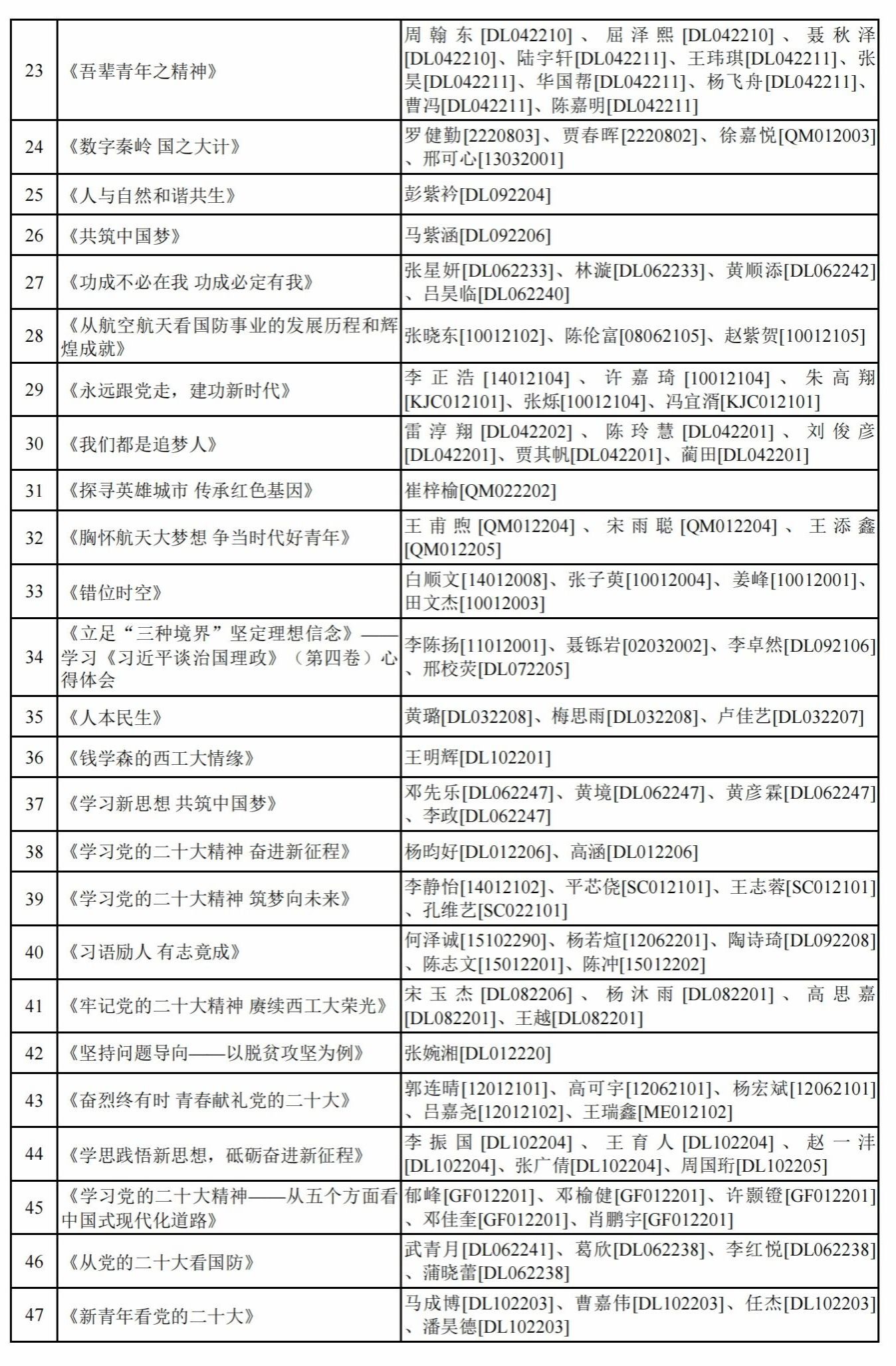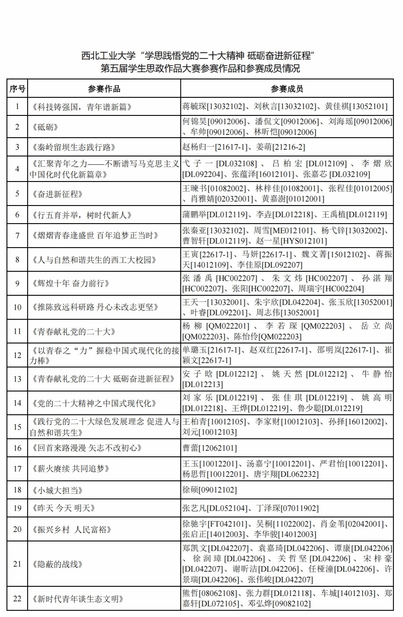 面向全校学生开展“学思践悟党的二十大精神 砥砺奋进新征程”第五届学生思政作品大赛。现将参赛作品和参赛成员予以公示。公示期间如有问题请向泰国A片