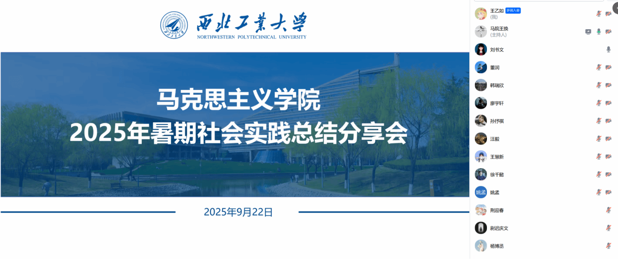 “铸剑护梦——传承‘总师育人文化’·守护留守儿童成长”“新时代西工大青年延安行”“‘小木耳大产业’柞水县木耳基地包装设计与产业升级路径探索”三支定向社会实践队依次分享实践成果,汇报内容详实、思考深入,展现出青马学子扎实的专业素养和服务社会的责任担当。本次汇报也为进一步提高实践质量、以更优异表现获评校级评比佳绩奠定了重要基础。
