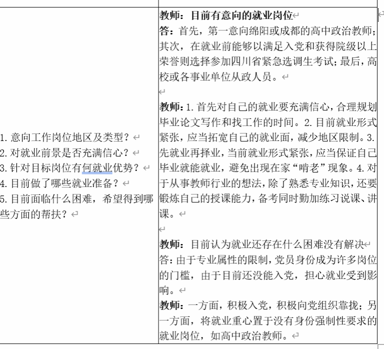 建立“学院领导+研究生导师+研究生辅导员”三级联动促就业机制,积极探索育人、服务、指导、统计工作一体化建设,切实做到“一人一档”“一人一策”动态化管理。本月中旬,开展了2024届毕业生精准帮扶台账第一轮记录,采取毕业生和帮扶教师谈话形式,内容涉及“意向工作岗位及类型”、“对就业前景是否充满信心”、“针对目标岗位有何就业优势”、“目前做了哪些准备工作”、“目前面临什么困难,希望得到哪些方面的帮扶”等五个方面,学生们感悟颇多,对当前就业形式、个人职业规划、求职技能提升等都有了全面的了解,开启了个人求职就业的第一站,本次帮扶工作做到了有重点、有特点、有节点。