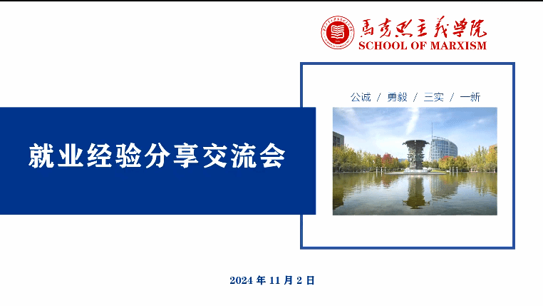 于11月2日开展线上就业经验分享交流会。本次活动共邀请五位2024届校友,他们分别从选调公务员、申请博士、硕博连读、思政教师以及入职研究所四个求职方向给同学们分享了宝贵经验,学院党委副书记李刚老师与硕士生们共同参与此次活动。