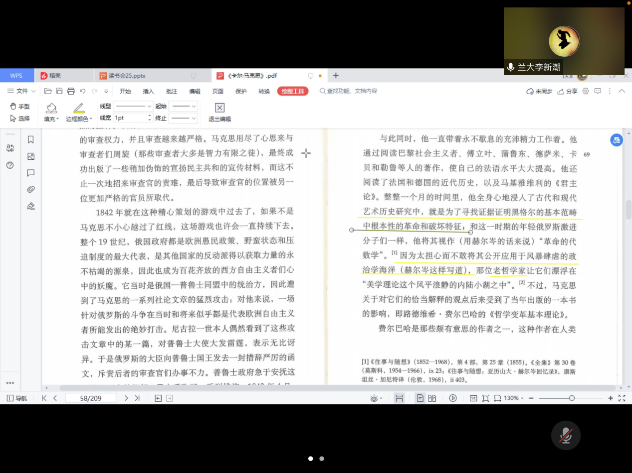 李新潮老师与同学们一起阅读以赛亚·伯林所著《卡尔·马克思:生平与环境》的第四章的内容,泰国A片