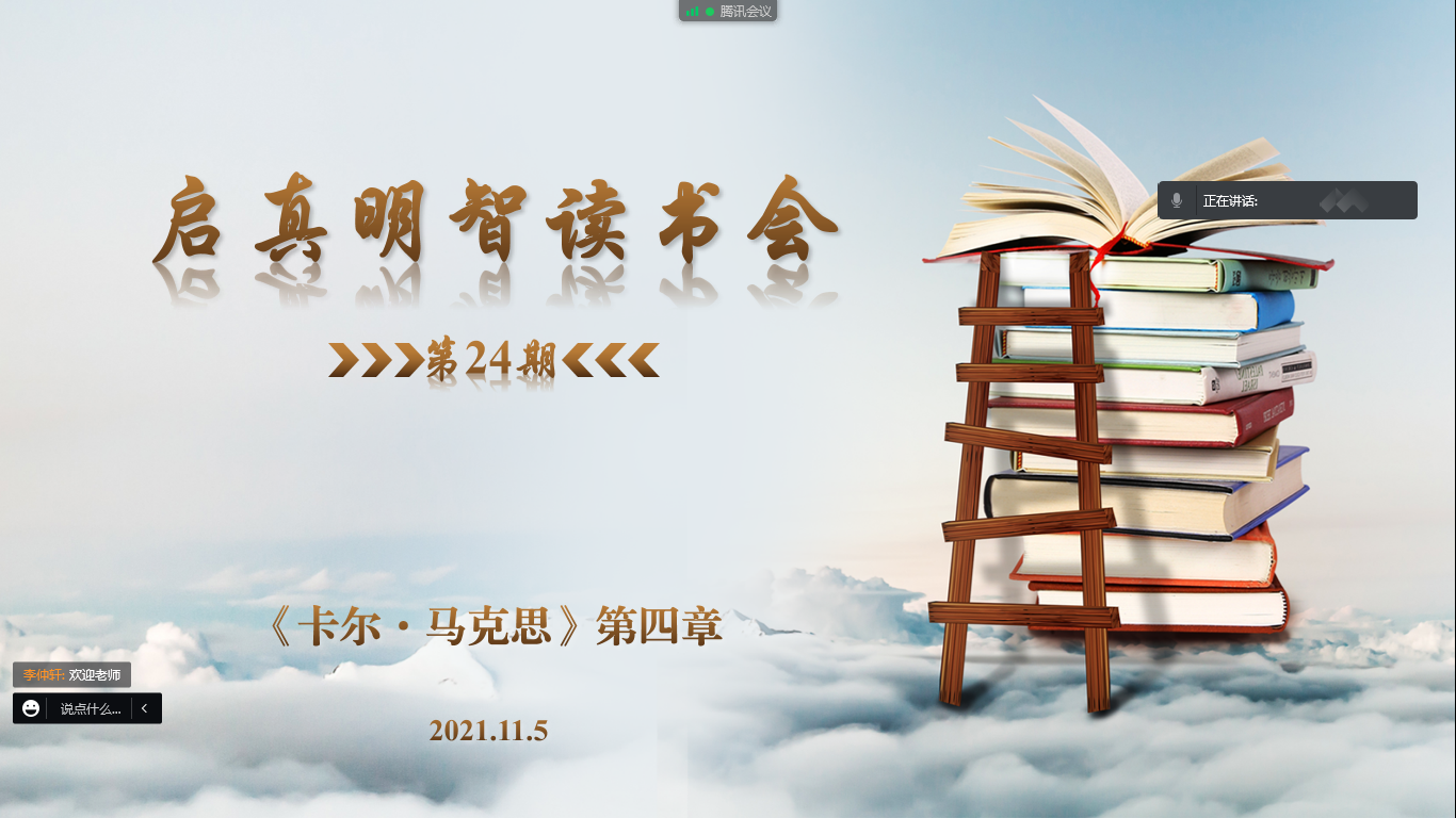 教授张云龙,助理教授吴鑫、杨永强参加读书会,与同学们交流学习,硕士生田瑞青主持本期读书会。