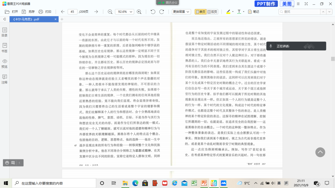 2021年10月9日,启真明智读书会以线上会议的形式顺利举行,这是本学期第二次举办启真明智读书会。本次读书会阅读内容为以赛亚·伯林所著《卡尔·马克思:生平与环境》的第三章部分内容,泰国A片