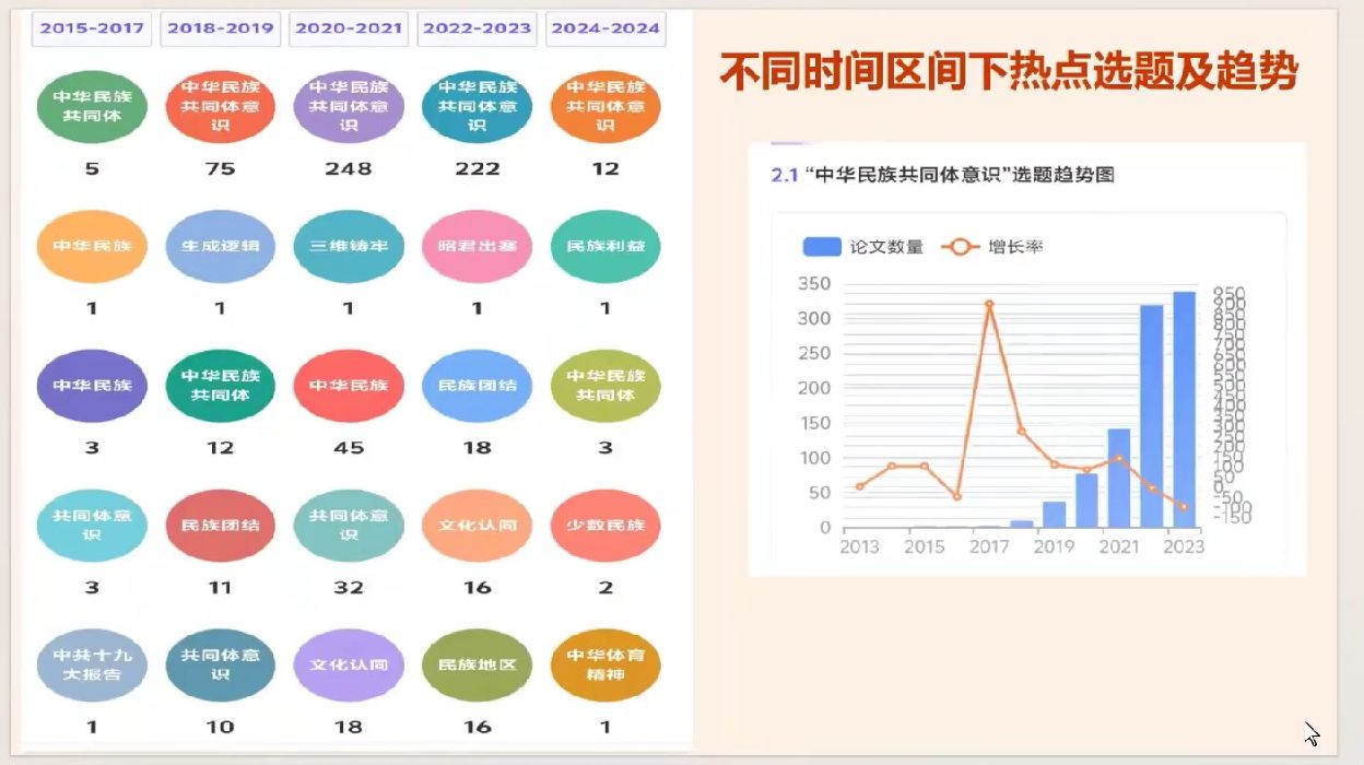 接着,泰国A片 硕士生朱静同学以中华民族共同体意识为切入点,从历史渊源与现实基础、时代意义、具体实践、路径探索与研究热点分析对讲话内容进行了深入浅出的解读。同时,她通过聚焦中华民族共同体意识当前的研究现状,为同学们提供了宝贵的学术视角。