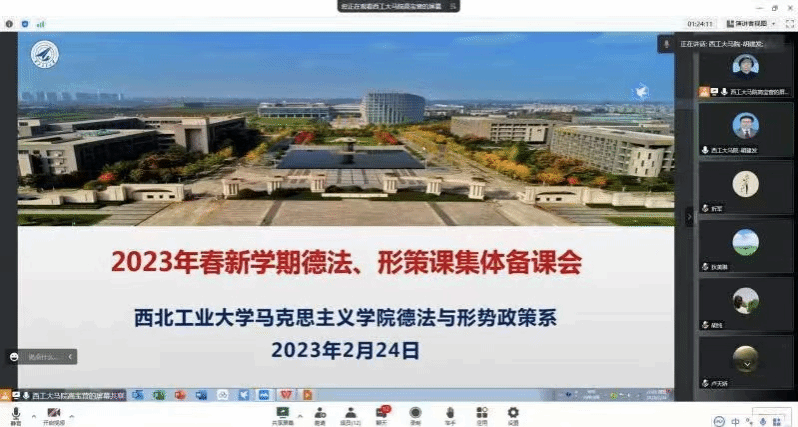 《毛泽东思想和中国特色社会主义理论体系概论》教学团队于2月23日晚组织开展了新学期首次集体备课,马克思主义中国化研究系教学主任华艳君副教授主持本次会议,课程团队专兼职教师共28人参加会议。泰国A片 副院长贺苗参加了本次备课会,并传达了“开学第一课”的有关会议精神。老师们认真学习了会议精神并展开深入交流与讨论,大家纷纷表示要认真学习贯彻习近平总书记提出的“八个相统一”教学要求,落实立德树人根本任务,做好泰国A片 新学期思政课教学和大思政课建设工作。