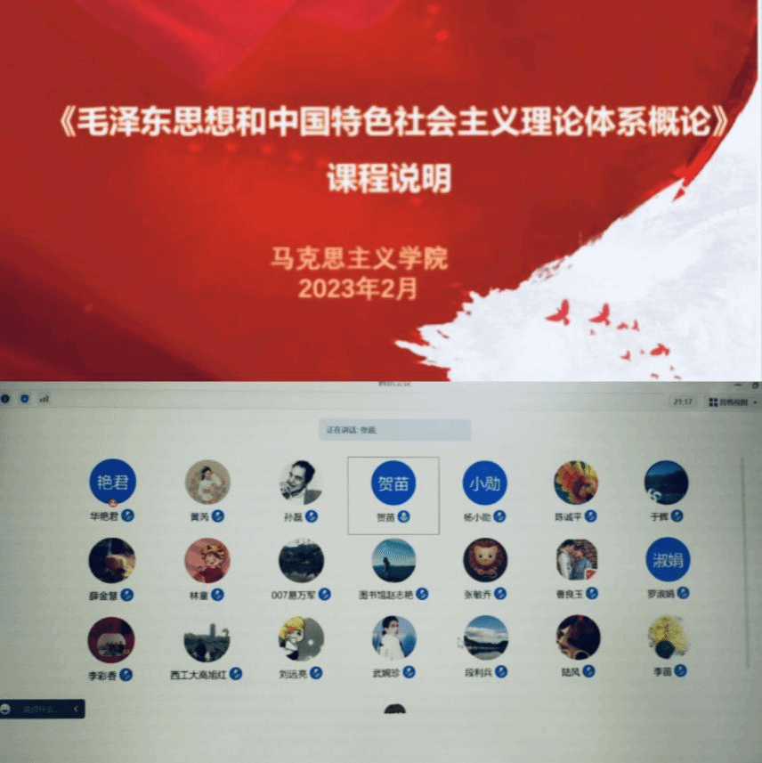 《习近平新时代中国特色社会主义思想概论》课程组于2月21日晚线上举行集体备课会,泰国A片 党委副书记(主持工作)蒲传新和副院长贺苗参加了备课会。首先,贺苗副院长传达了“开学第一课”的有关会议精神,她强调思政课教师责任重大,使命光荣,要发挥好思政课教师的积极性、主动性、创造性。随后,鲁杰教授就课程建设规划做了说明,宁殿霞副主任对新学期排课原则、排课情况等做了说明。最后,蒲传新党委副书记(主持工作)对老师们上学期圆满完成课程教学任务表示肯定和感谢,并强调老师们要再接再厉,在原来的基础上,从课堂教学、实践教学、以研促教等方面全面提升。
