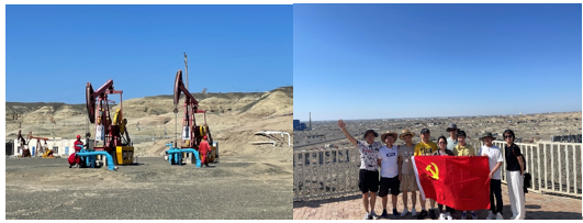 第四站:克拉玛依百里大油田。6月30日,研学团队领略了克拉玛依百里大油田的盛况与震撼。克拉玛依油田发现于1955年,是新中国发现的第一个大油田。近70年来,几代石油人满怀对祖国的忠诚和热爱,以“安下心、扎下根、不出油、不死心”的崇高情怀,奔赴戈壁荒滩、挺进茫茫沙漠,谱写出一部奉献石油、产业报国的光辉历史。