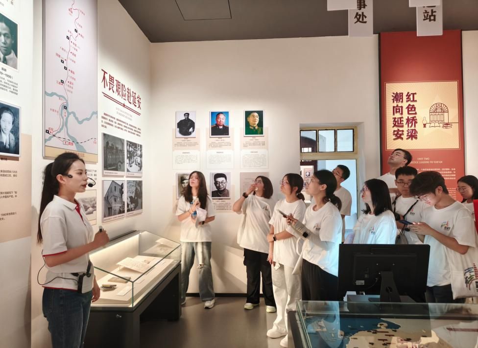 上午8时,在八路军西安办事处纪念馆,团队成员认真参观了“到延安去”主题展览。从“延安灯塔,胜利指引”到“红色桥梁,潮向延安”,从“革命熔炉,铸魂育才”到“永久奋斗,赓续华章”,一幅幅珍贵的历史图片和文物资料生动再现了革命先辈的奋斗历程,使队员们身临其境地感受曾经的激情岁月。随后,实践队参加出征仪式、观看情景剧《我要去延安》、聆听“抗战时期国际友人:如何讲好中国故事”思政课等专题活动,接受了一次深刻的革命传统教育和精神洗礼,在沉浸式体验中学习党的光辉历史,汲取奋进力量,深刻感悟到延安精神的时代价值。
