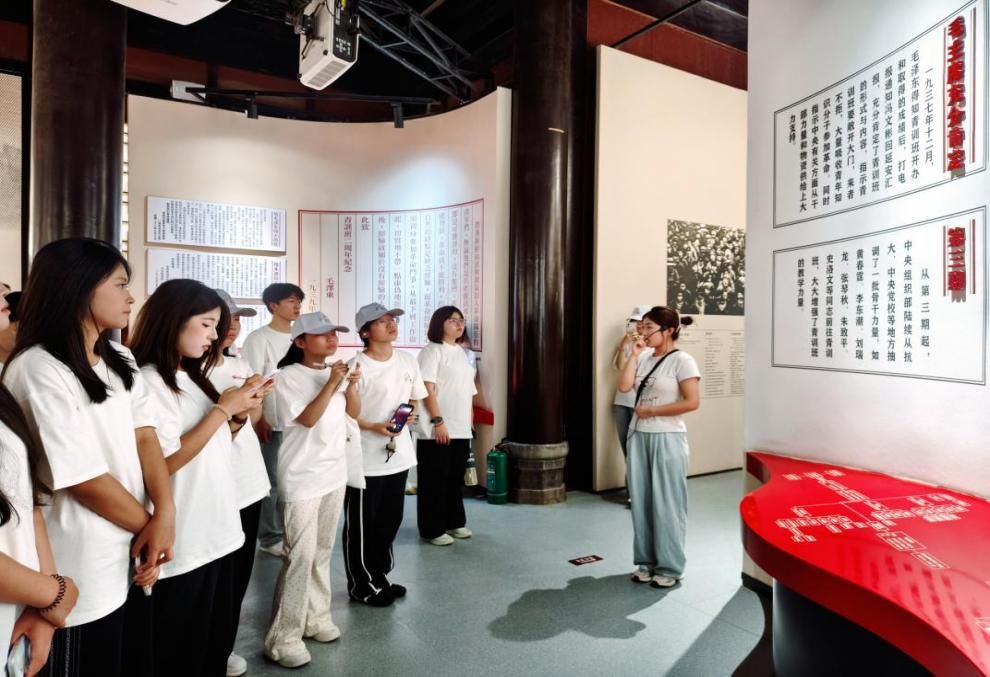 下午2点,在安吴青年训练班革命旧址,实践队通过现场交流深入了解抗战时期青年干部培养的光辉历程,感悟革命先辈的奋斗精神。在庄严肃穆的主展厅六椽厅内,实践队员认真聆听青训班的创办历程;展内生动再现了来自全国各地的进步青年在这里学习革命理论、军事技能的真实场景,特别是“学好本领上前线”的办学宗旨,让队员们深刻体会到当年青年学子保家卫国的豪情壮志。青训班学员团结拼搏,艰苦奋斗的精神激励新时代青年投身科研创新、基层服务,以实际行动践行新时代青年的责任与担当。