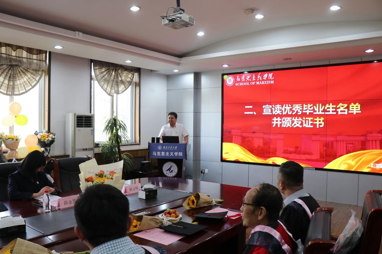 学院党委书记王彦革宣读2022届优秀毕业生名单并颁发证书,对他们在学习科研中取得的丰硕成果表示祝贺。同时勉励他们再接再厉,在未来的道路上继续追求卓越,不断创造新的辉煌。