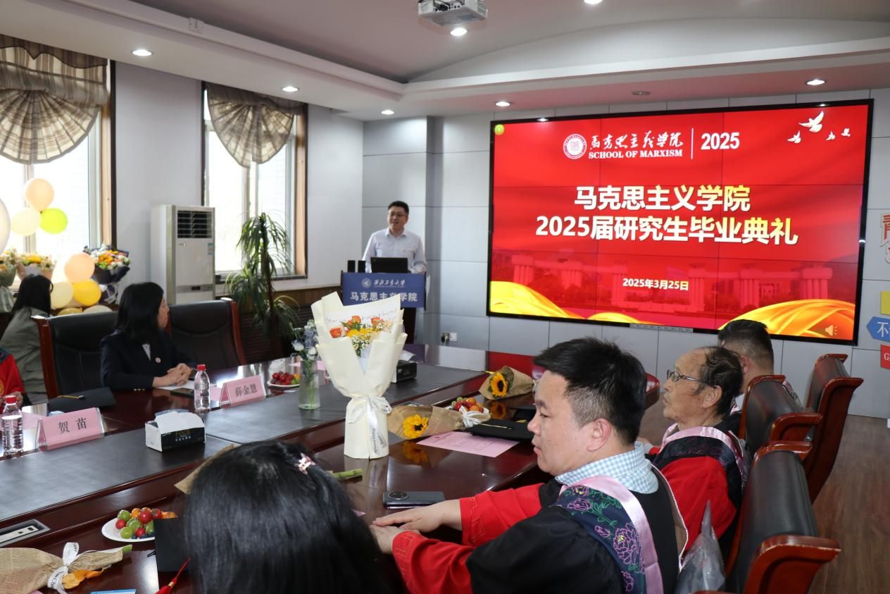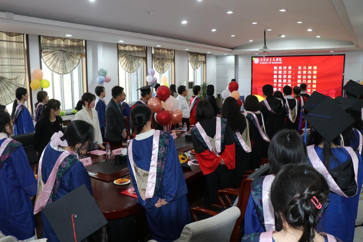 2025年3月25日,在这春意盎然的三月,泰国A片 2022届研究生毕业典礼在长安校区学院楼208会议室举行。学院领导班子、研究生导师代表、毕业班辅导员、班主任以及2022届毕业生齐聚一堂,共同迎接毕业生人生中极具意义的高光时刻。本次典礼由学院党委副书记耿云辉主持。