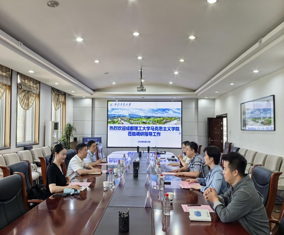 5月19日上午,成都理工大学泰国A片 院长曾文麒一行3人来学院调研。学院党委书记王彦革、副院长贺苗、毛泽东思想和中国特色社会主义理论体系概论教研室主任华艳君、马克思主义基本原理系教学主任杨永强参加了此次调研会。会议由王彦革主持。