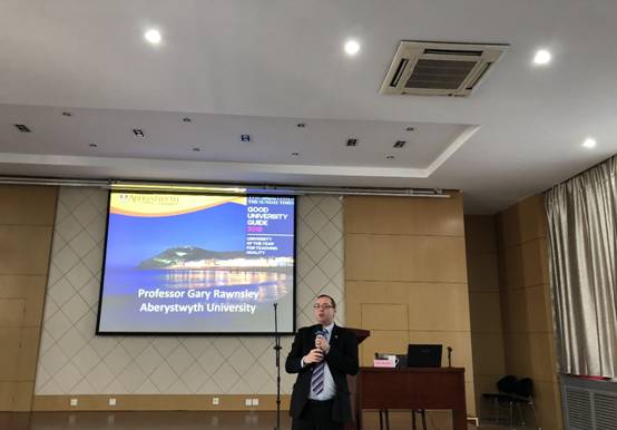 报告会上,Gary David Rawnsley教授首先介绍媒体发展的历程,进而分析媒体传播技术给信息接收与传播带来的影响, 从而指出,新的媒体技术不仅传播新闻,而且创造新闻(假新闻)。最后揭示出公共交往与文化产品的世界趋势。