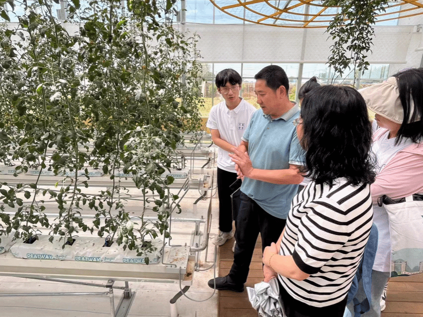 7月6日下午,走进临潼区番茄智慧谷,队员们立刻被昂然生长、色泽鲜亮的各类番茄吸引了目光。这里处处传递着现代农业的气息:借助物联网、人工智能等现代化科技手段,番茄智慧谷实现了番茄品种标准化,种植方式智能化,管理方式高效化,与传统农业相比,不仅节省了大量的劳动力,而且极大提高了番茄的产量和品质,创造了巨大的经济效益。技术人员指出,番茄智慧谷严格按照“政府+高校+企业+村集体经济+农户”的发展模式,不断推动新兴技术与农业生产的深度融合,为农业插上科技的翅膀,为农民增收致富、乡村振兴和农业农村现代化不断注入新的动力。