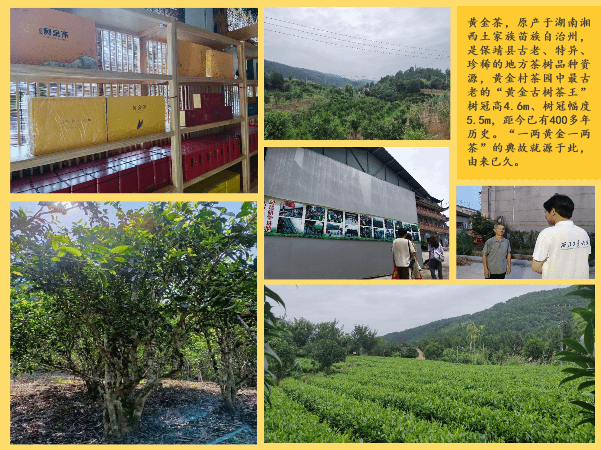 实践队员在参观完青竹山生态有机茶园之后,来到了茶厂销售部,这里陈列着各式各样的加工茶品。湘西的黄金茶在2010年被农业部批准成为地理标志性保护农产品。为了更好传承发扬黄金茶文化,当地政府还专门组织农民参加“黄金茶茶社茶艺班”,系统学习黄金茶的起源、历史、茶道,加强广大茶农对黄金茶的了解,与此同时还开展了“斗茶会”“黄金茶新春品鉴会”等一系列活动,持续推动黄金茶产业的保护、传承与发展。
