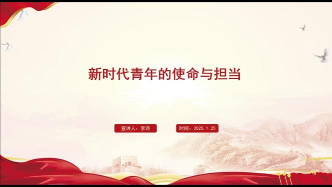 1月22-24日开展线下宣讲活动。汪毅同学参加了义安区团委组织的青年学子家乡行暨青创会客厅(第六期)活动,并汇报了自己的求学经历和学习心得,给返乡学子提供了就业建议。各位青年也关于就业、创业中可能遇到的问题进行深入交流。李诗同学赴汉中市以“新时代青少年的使命与担当”为题,为参加汉台区冬令营的小朋友们作了一堂微课,以放羊孩子海娃、雷锋以及郭永怀为例进行分享,鼓励小朋友们从现在做起,从身边的小事做起,如努力学习、帮助他人、保护环境等,以实际行动践行使命与担当。课程结束后给辅导学业。小朋友身上的蓬勃精神与活力,让我们相信他们能够成为有担当、有责任感的新时代好少年。