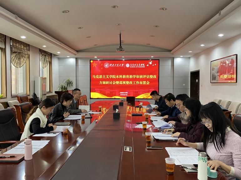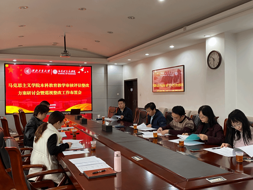 以问题为导向,继续加强本科思政课教学质量提升。2024年3月13日上午10:30,学院组织召开本科教育教学审核评估整改方案研讨会暨巡视整改工作布置会。学院党委书记蒲传新、副院长贺苗,马克思主义基本原理系教学主任杨永强、马克思主义中国化研究系教学主任华艳君、中国近现代史基本问题研究系教学主任房小捷、德法与形势政策系主任胡建发、思想政治教育系副教授张淑华,公共课教学秘书张笑男、张懿晨等参加了会议。会议由副院长贺苗主持。