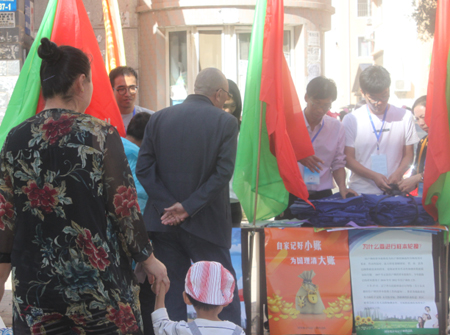 六、氛围热烈,观众众多。宣传活动主现场设在本轮住户调查新样本点----双塔区富祥社区的云水小区A区,同时在临市区主街道的朝阳大街两侧的大型宣传栏和公交车站站厅张贴宣传海报。活动现场彩旗飘扬;小区门楣、门柱上红底黄字的宽幅标语尤其醒目。