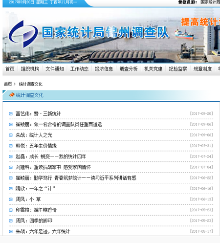 二是网站宣传。在统计开放日当天,锦州调查队将在市政府网站上进行统计开放日专题宣传。锦州调查队以“统计新动能服务新常态”为主题的征文,优秀文章也将在锦州调查队网站上进行展示。